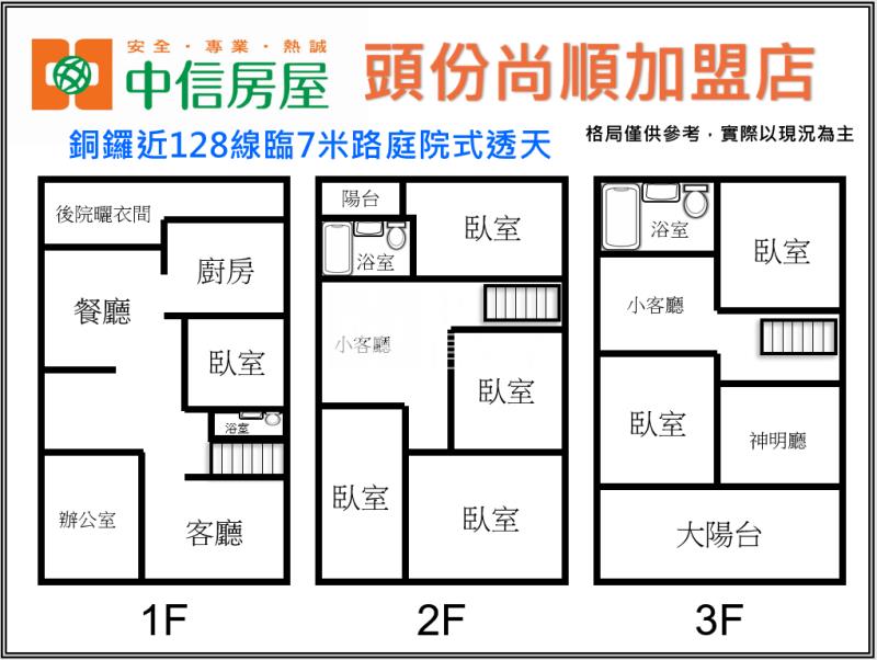 銅鑼近128線臨7米路庭院式透天